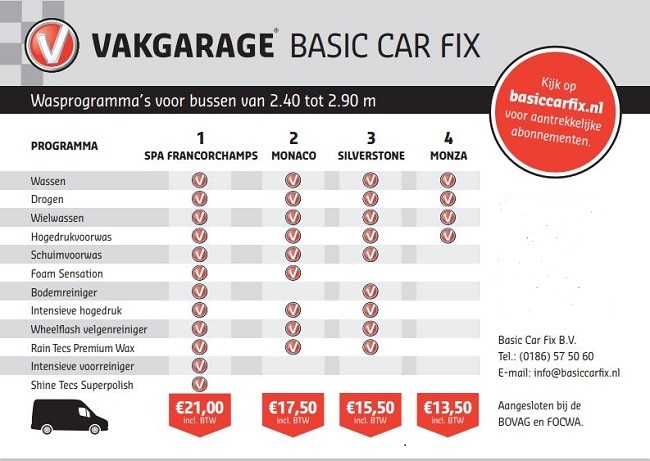 Let op september 2025 is de wasstraat op zaterdag gesloten.